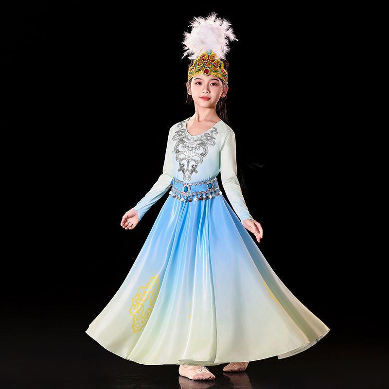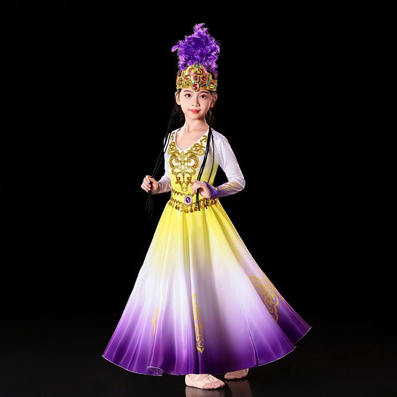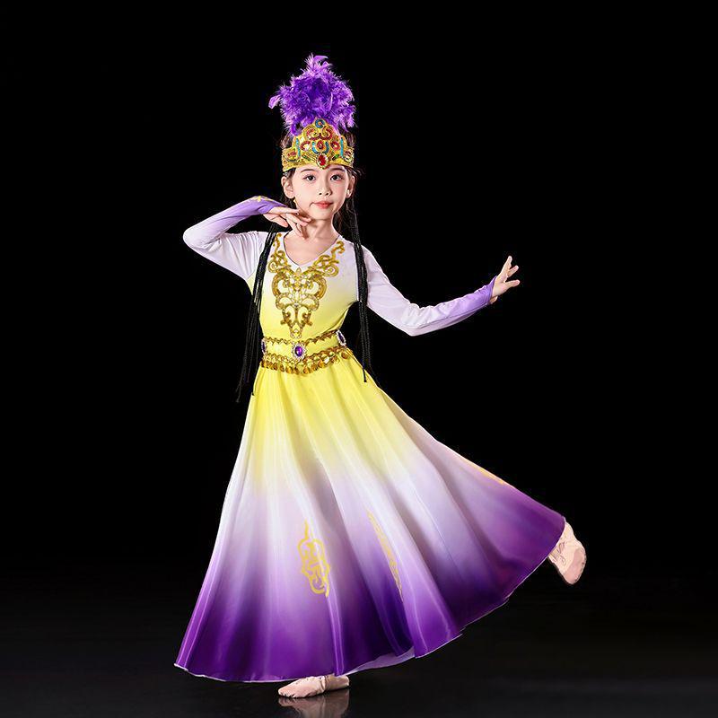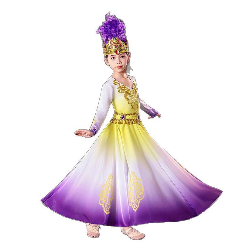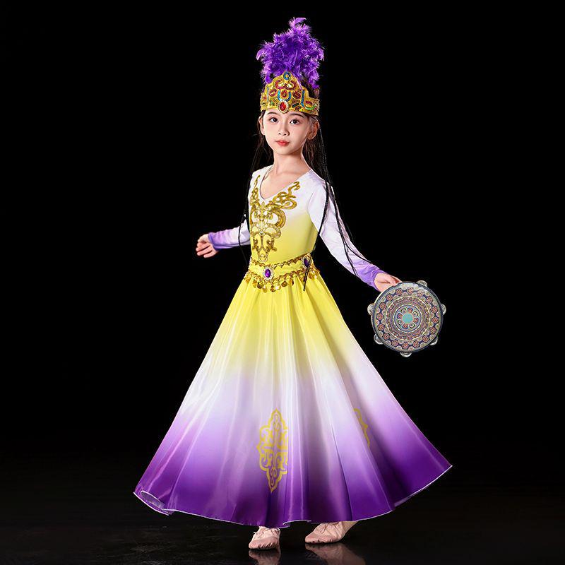 Детский костюм для уйгурского танца с ручным барабаном и юбкой