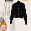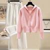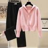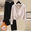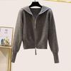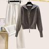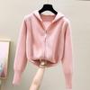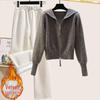 Сладкий осенне-зимний женский вязаный костюм с капюшоном на двойной молнии