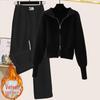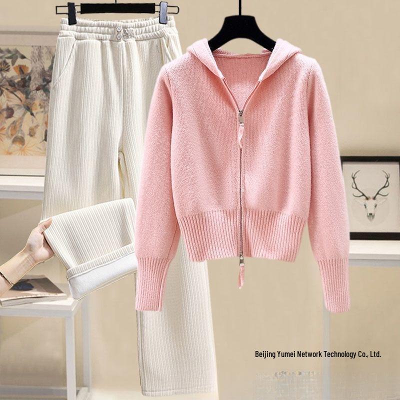 Сладкий осенне-зимний женский вязаный костюм с капюшоном на двойной молнии — купить товар онлайн с бесплатной доставкой по всему миру!