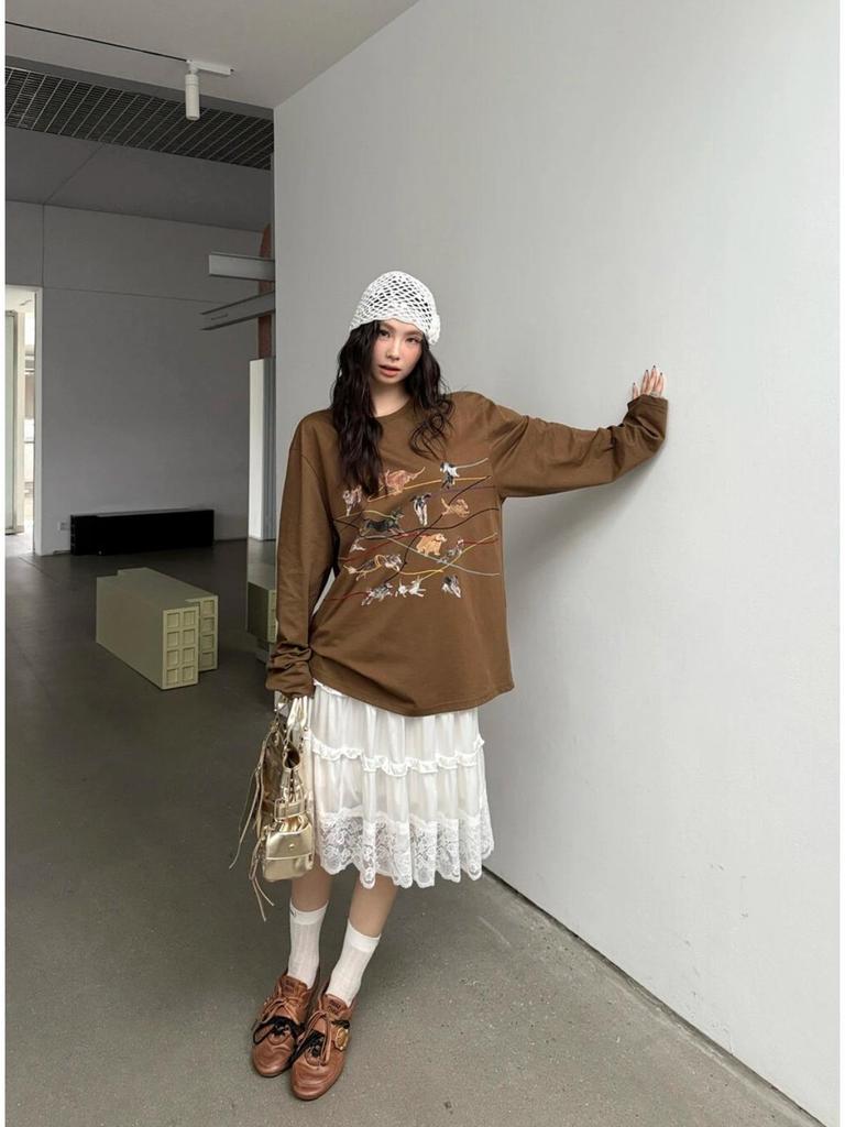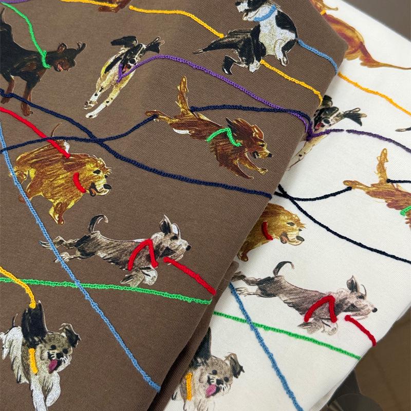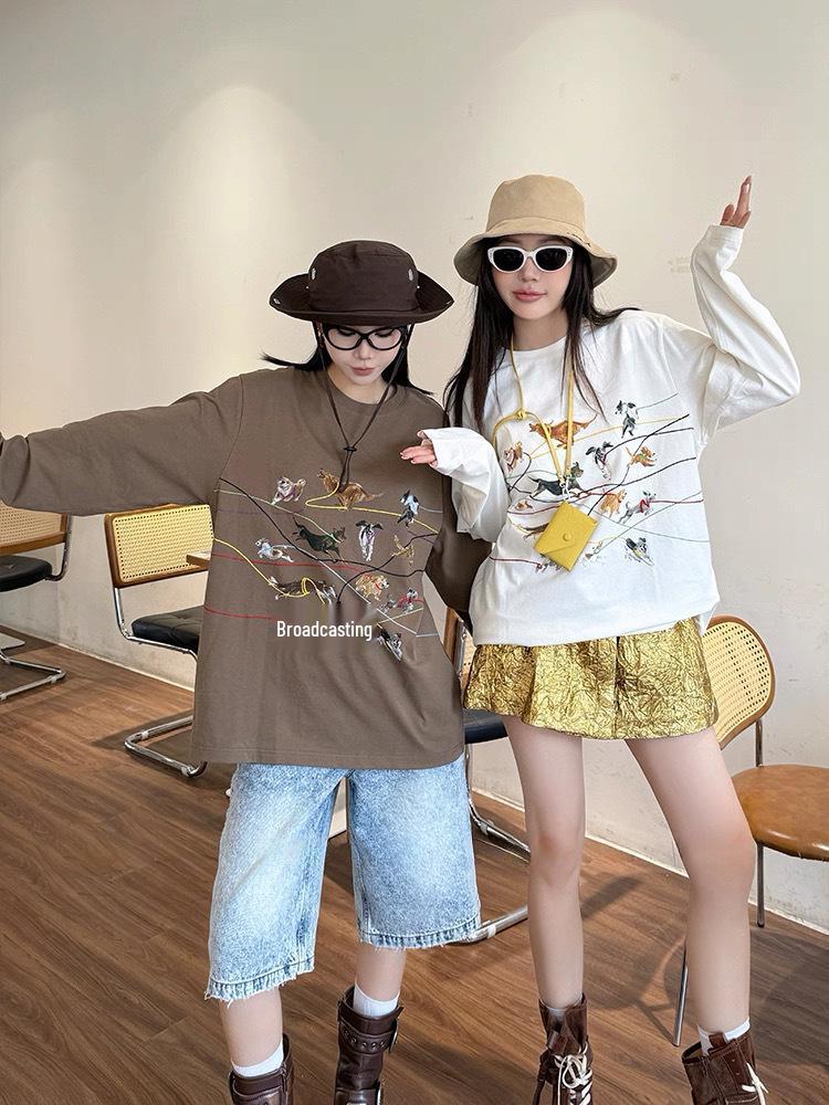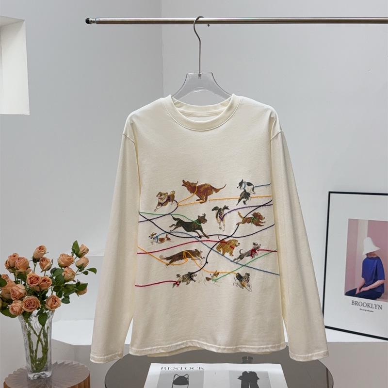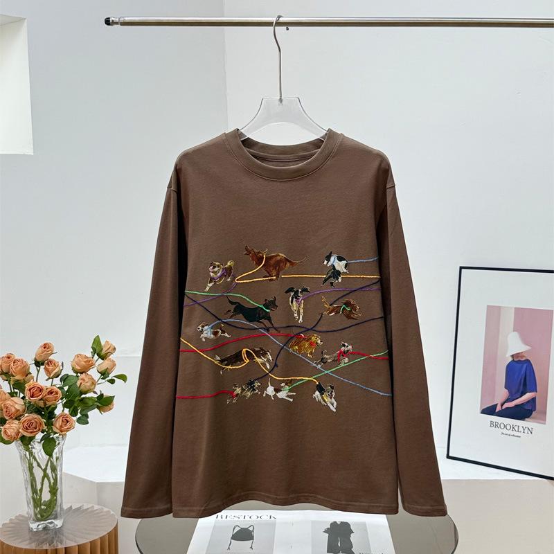 ID Осенняя футболка с длинным рукавом и вышивкой с принтом ретро-щенка