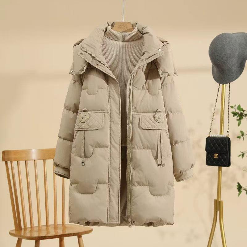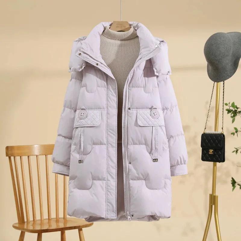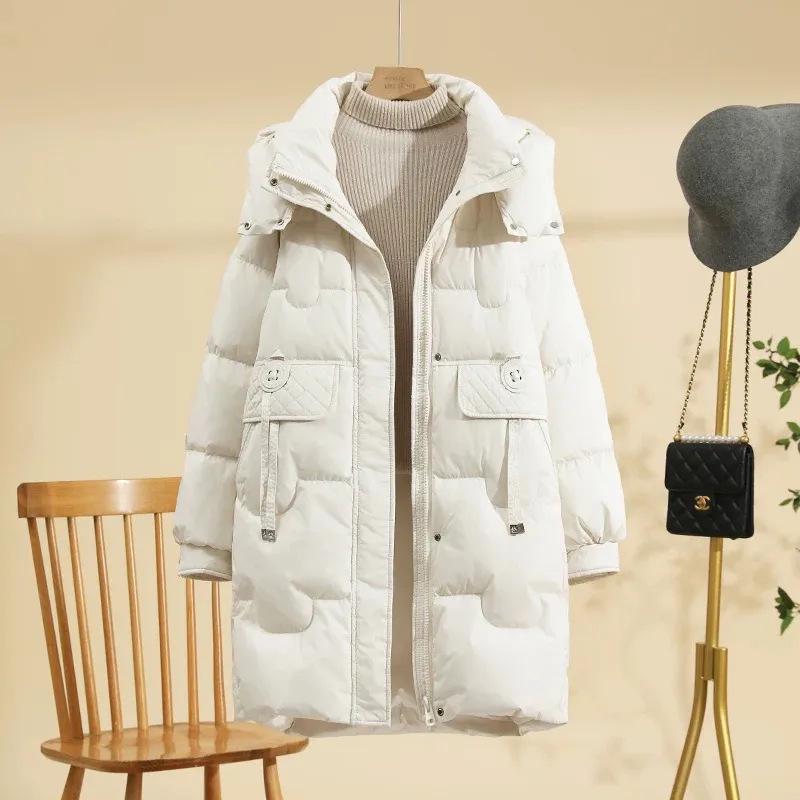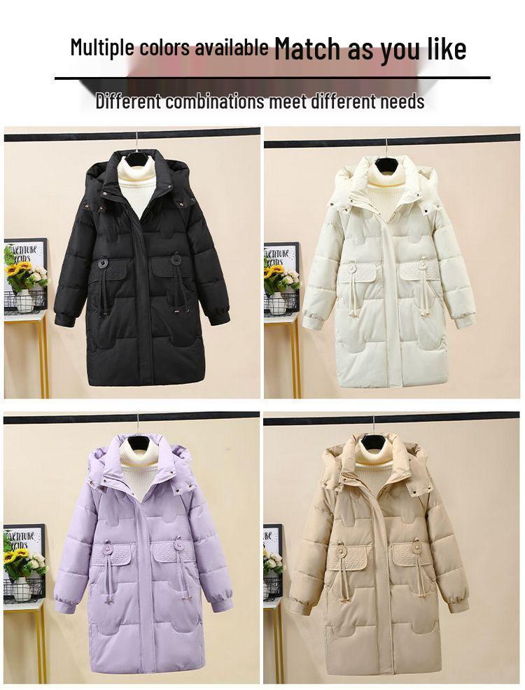 Женское хлопковое пальто средней длины в корейском стиле 2024 года: Зимняя мода, Теплая, Универсальная куртка.