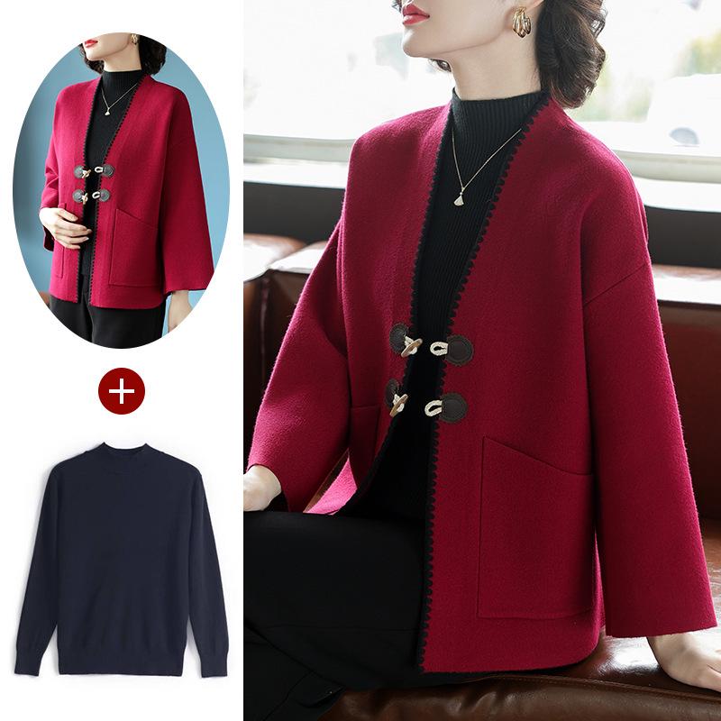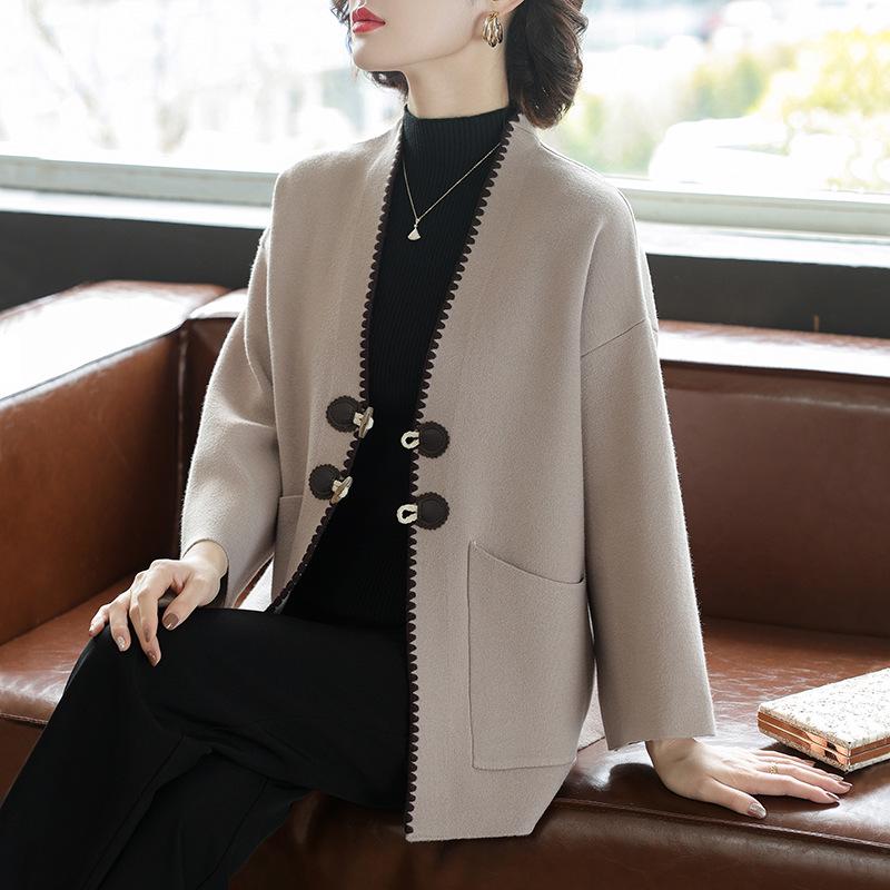 Женский вязаный кардиган на весну и осень: Модный тренч для среднего и пожилого возраста, новый стиль 2025 года с благородным, элегантным дизайном.