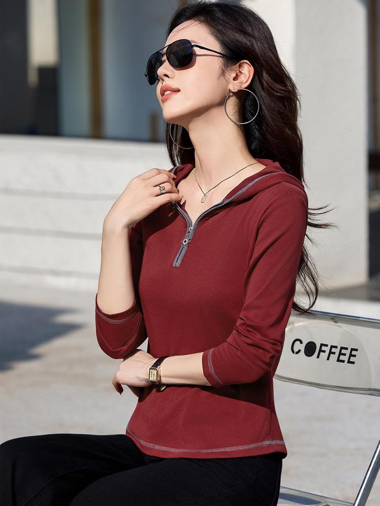 Почувствуйте комфорт и стиль в любое время года с этой универсальной хлопковой футболкой. Эта рубашка, изготовленная из высококачественного хлопка, имеет однотонный узор и льстящую фигуре, стройнящую посадку.. Длинные рукава и капюшон добавляют уюта, что делает его идеальным для многослойности с весны до зимы.. Собираетесь ли вы по делам или отдыхаете дома, эта футболка — незаменимое дополнение к вашему гардеробу.
