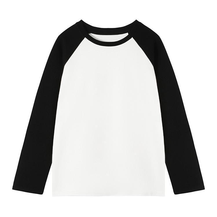 Осень 2025 Лонгслив с рукавом реглан в стиле колор-блок – Свободный лоскутный базовый слой для осени/зимы.