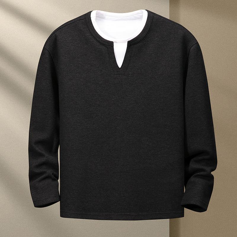 Мужской осенне-зимний пуловер контрастного цвета, двухслойный, с круглым вырезом, с длинными рукавами, повседневная модная рубашка, футболка, топ