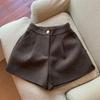 Женские эластичные шерстяные брюки с высокой талией и широкими штанинами, с разрезом, стройнящие, осенне-зимние, свободного кроя.