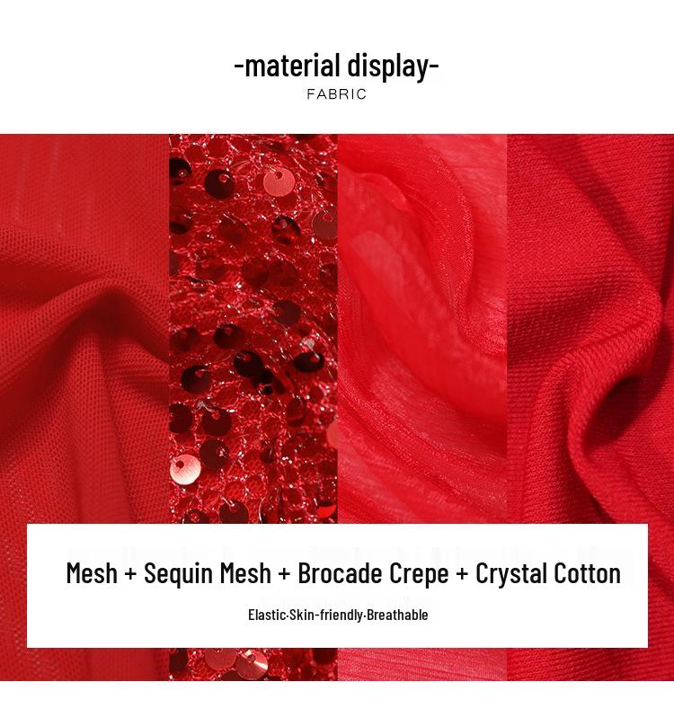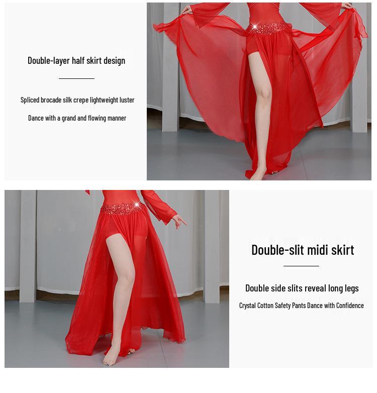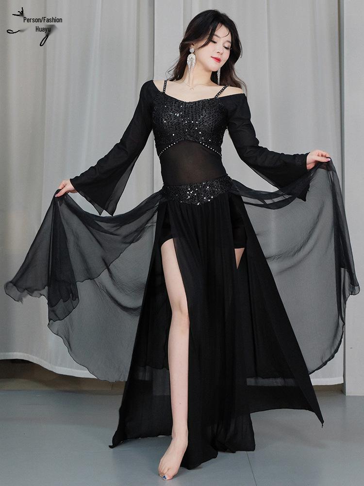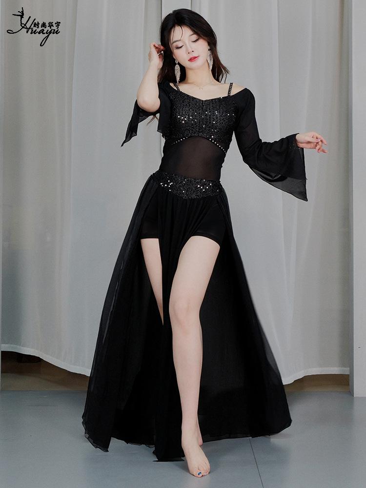 Huayu 2025 Блестящий комплект платья для танца живота - Сетчатое длинное платье для практики и выступлений