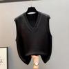 Вязаный женский кардиган без рукавов с V-образным вырезом - Корейский стиль, свободный крой для весны/осени/зимы.