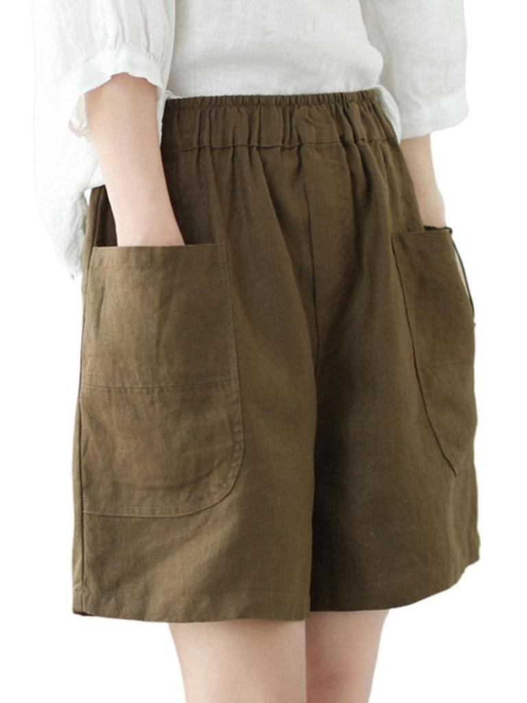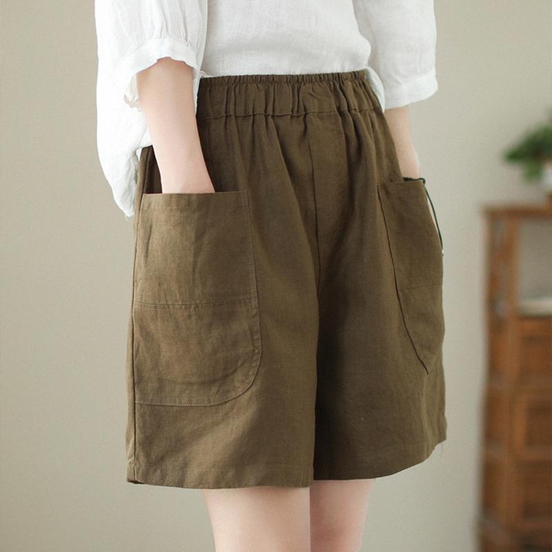 Женские летние шорты из льна и хлопка больших размеров - Новый 2025 год, повседневный стиль