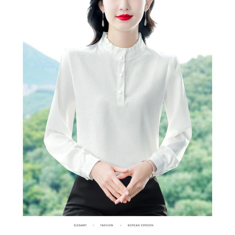 Шифоновая блузка женская с длинным рукавом, черная, с воротником-стойкой и цветочным принтом — купить товар онлайн с бесплатной доставкой по всему миру!