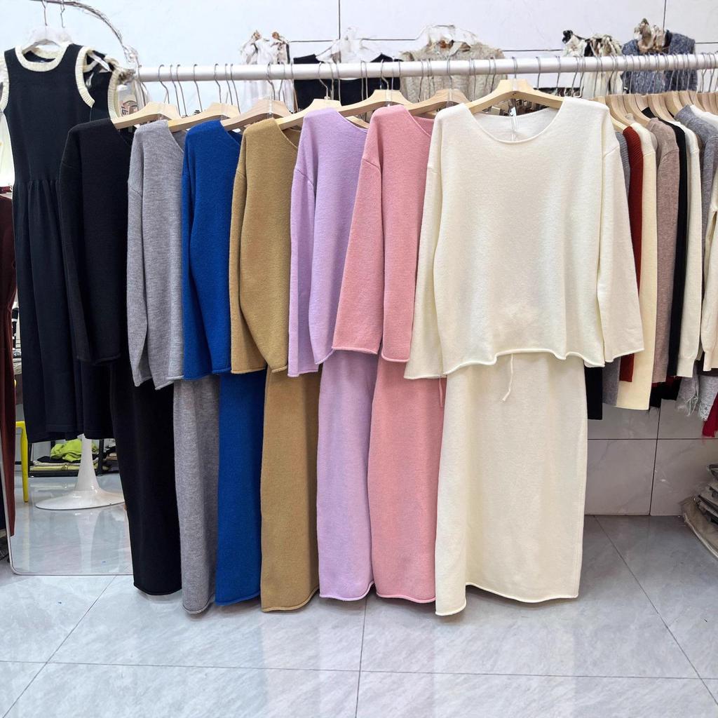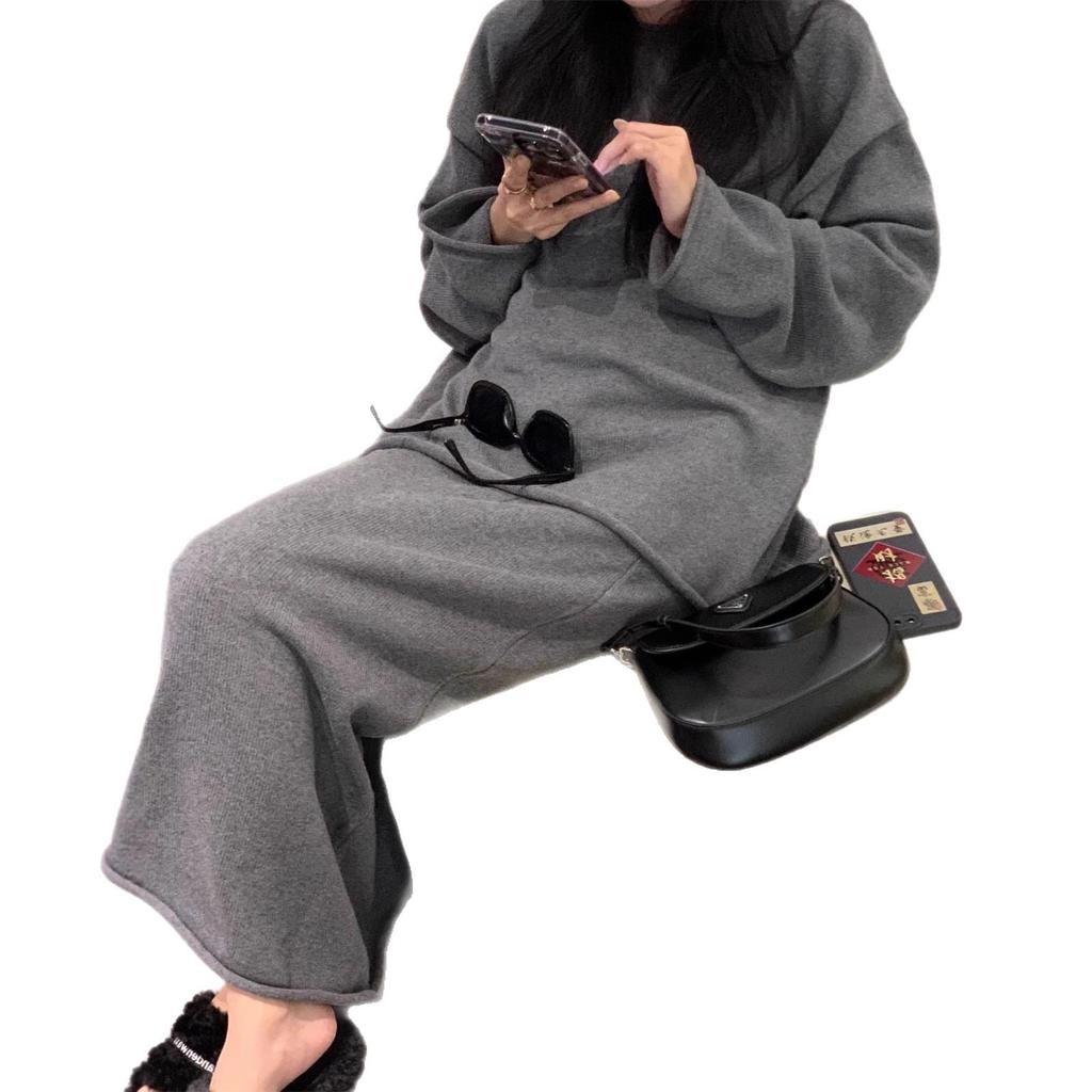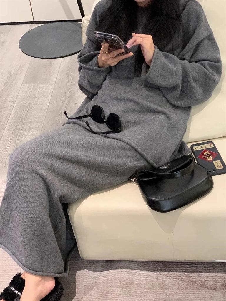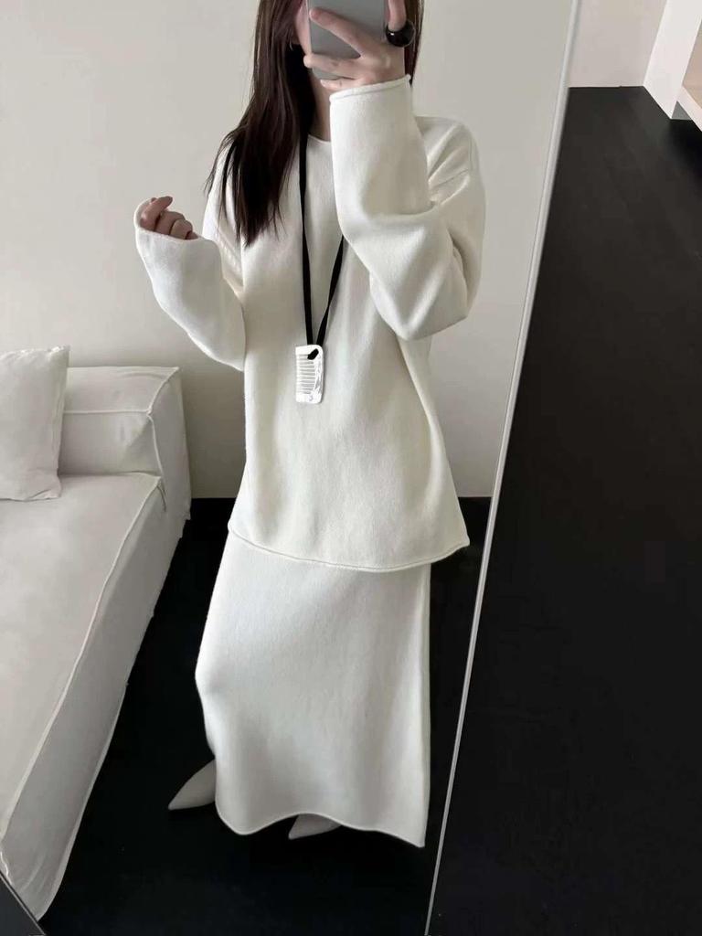 Комплект из двух предметов в корейском стиле: вязаный свитер с круглым вырезом и миди-юбка с высокой талией для женщин, коллекция осень/зима 2025