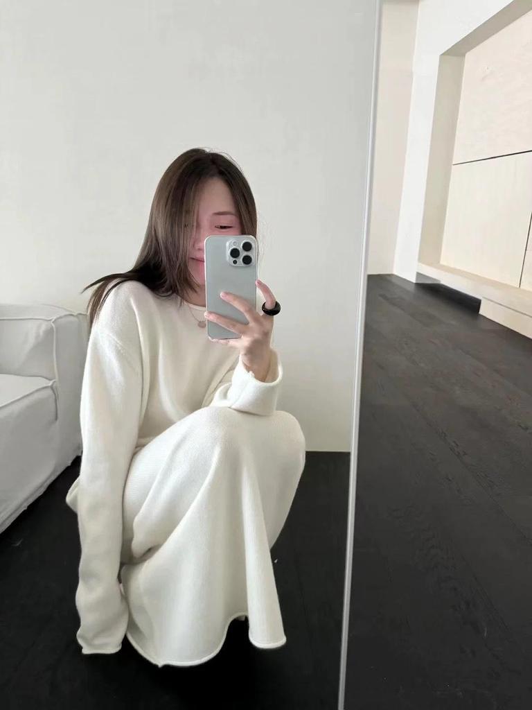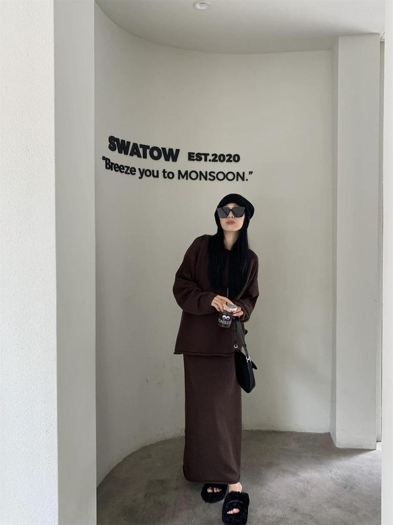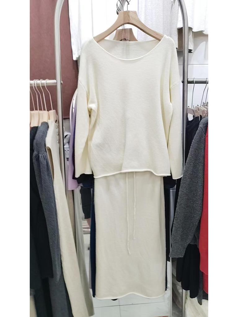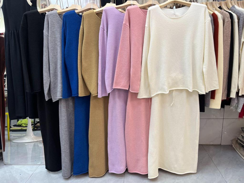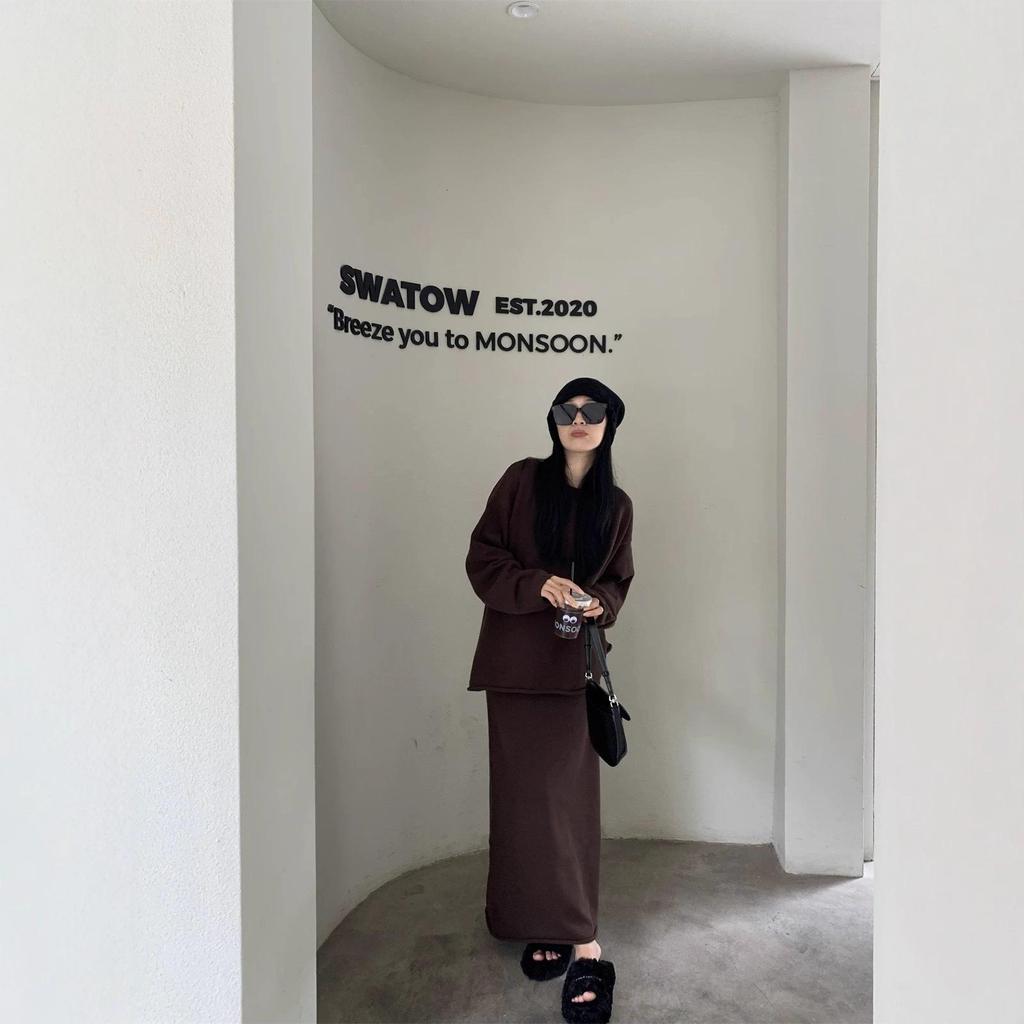 Комплект из двух предметов в корейском стиле: вязаный свитер с круглым вырезом и миди-юбка с высокой талией для женщин, коллекция осень/зима 2025
