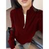 Свитер женский в корейском стиле с вязаным узором «косы» и застежкой-молнией до середины - Осень/Зима 2024