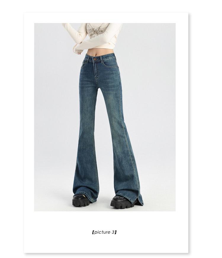Обновите свой осенний гардероб этими женскими джинсами микро-клеш с высокой посадкой в шикарном ретро темно-синем цвете.. Эти джинсы в пол, созданные с облегающим силуэтом, обеспечивают привлекательную посадку и современный вид.. Высокая линия талии подчеркивает вашу фигуру, а мягкий хлопковый материал обеспечивает комфорт в течение всего дня.. Идеальные для любого случая, эти джинсы сочетают в себе стиль и удобство, что делает их незаменимой вещью сезона.