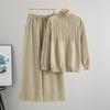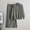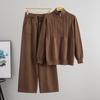 Женский модный вязаный комплект Осень/Зима: Свитер на молнии до середины и брюки широкого кроя