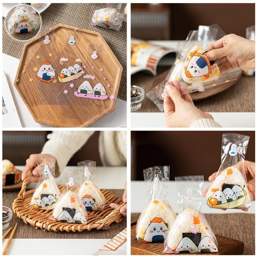 50 шт. Прозрачная обертка для рисовых шариков Мультяшный узор Суши-пакет Треугольный пакет Упаковка для еды