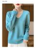 Minimalist 100% Wool V-Neck Sweater: Seamless, Solid Color, Long Sleeve, New Women's Knit — купить товар онлайн с бесплатной доставкой по всему миру!