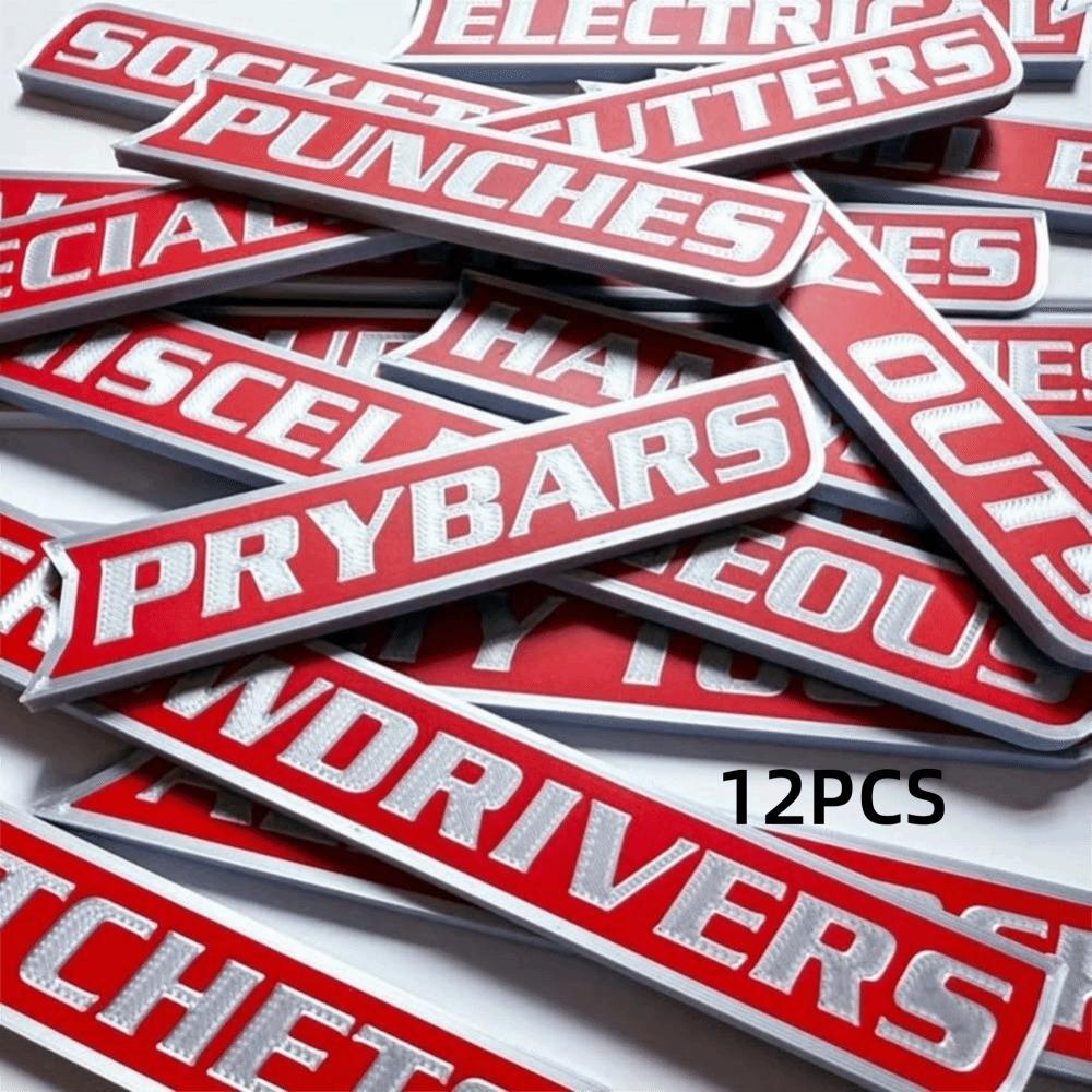 3. Универсальное применение: Идеальные для различных условий, эти этикетки можно использовать на стальных тележках, ящиках, шкафах и даже ящиках для инструментов, обеспечивая аккуратную организацию всех ваших аксессуаров, таких как сверла, торцевые головки, плоскогубцы, гаечные ключи и многое другое.