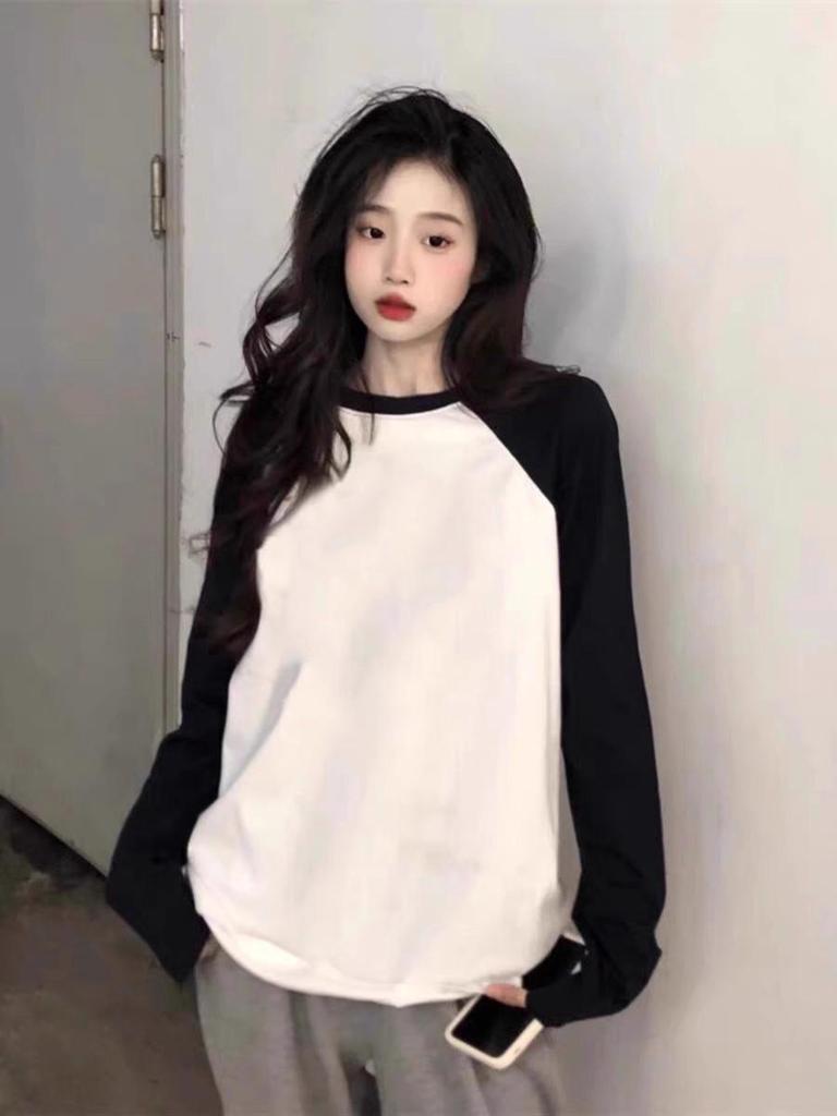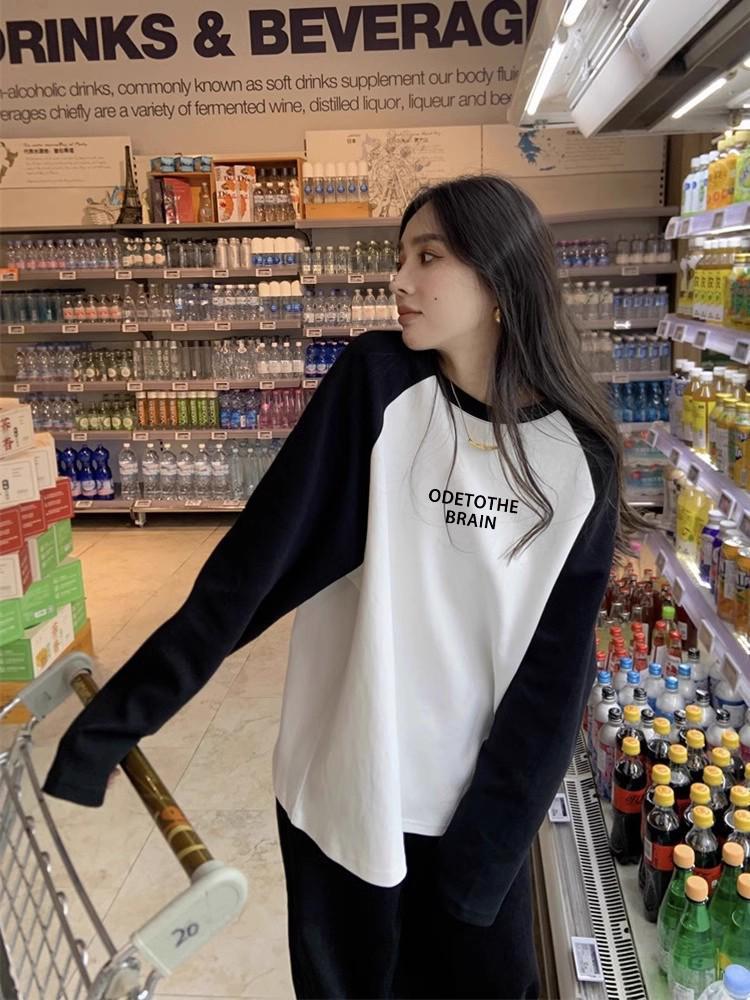 This charming women's t-shirt is perfect for spring and autumn, combining comfort and style with its loose fit and cotton construction. The long raglan sleeves feature a delightful color block design, adding a fun and playful touch. The t-shirt's round neckline offers a classic look, while the printed decoration adds an extra layer of appeal. Ideal for layering, this cotton top is versatile and effortlessly complements a variety of casual outfits.