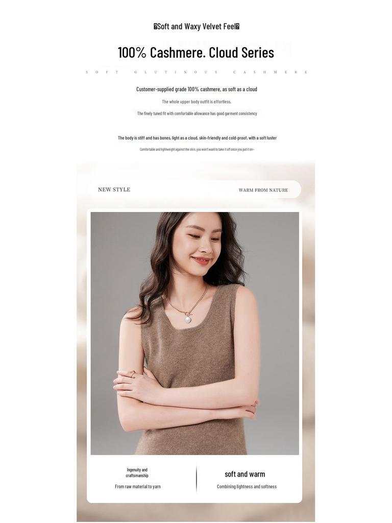 Женская кашемировая вязаная майка без рукавов с U-образным вырезом