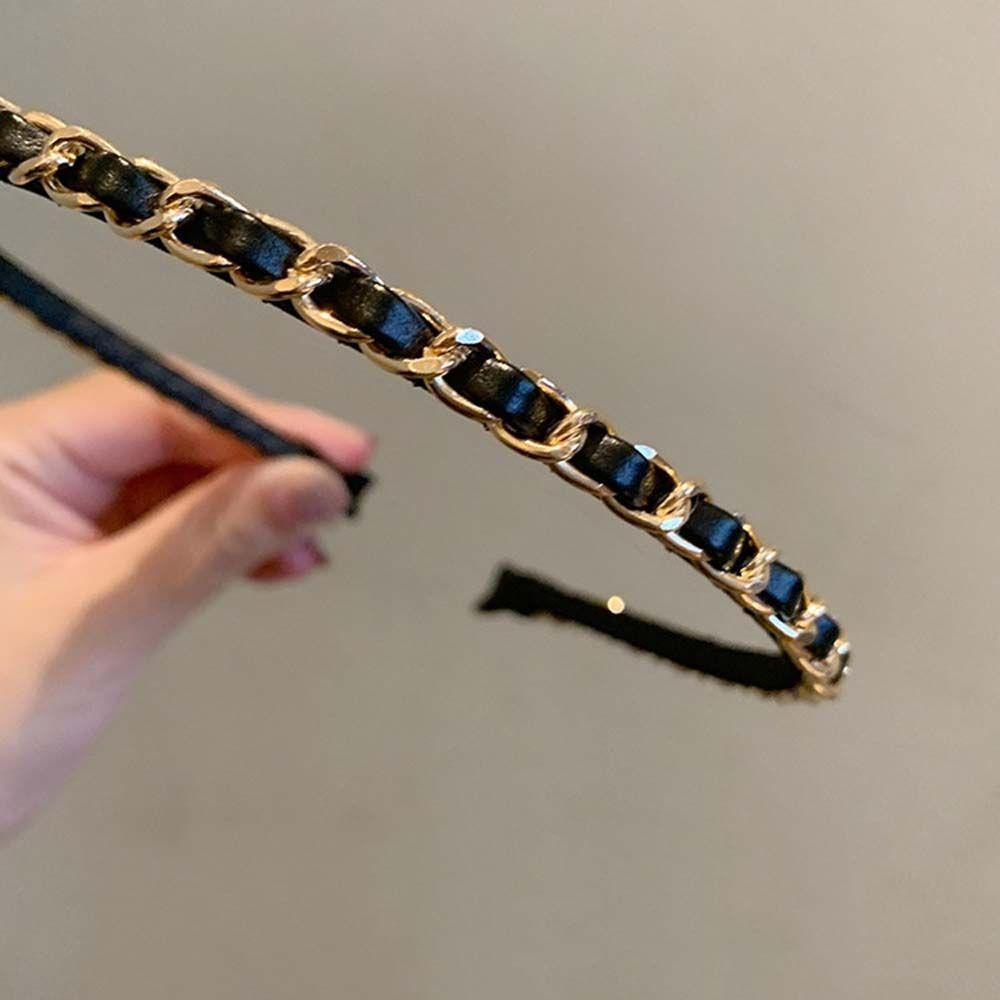 Золотистый цвет Черные металлические цепочки Женская повязка для волос Аксессуары для волос ПУ цепочки Ободок для волос Корейский обруч для волос