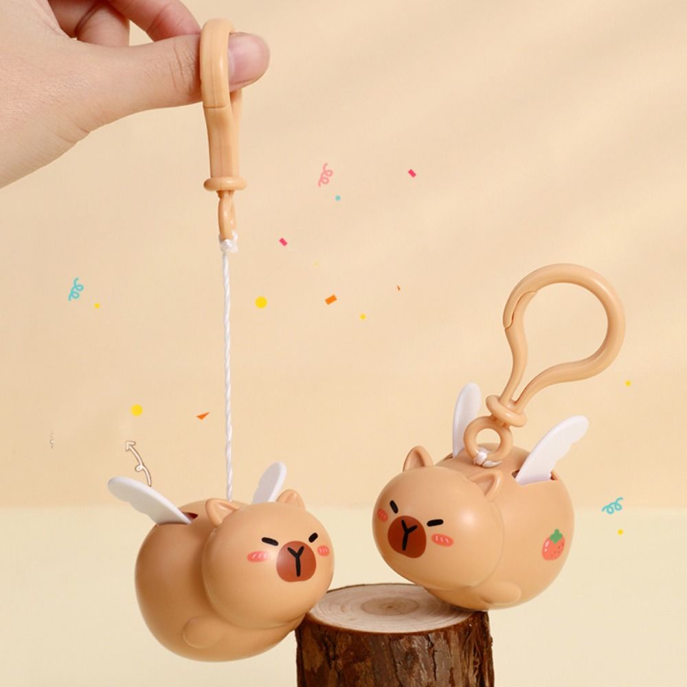 Kapibara Flying Capybara Keychain Kawaii Pull String Capibara Keyring Bag Hanging