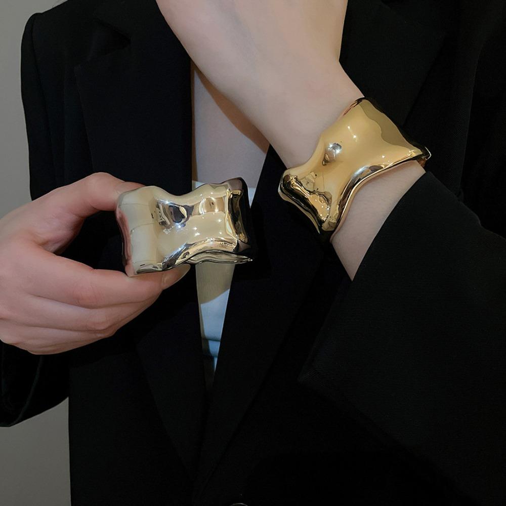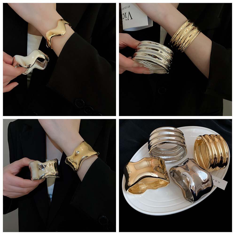 Золотой Серебряный Цвет Цинковый Цинковый Сплав Широкий Открытый Браслет Европа Американский Стиль Преувеличенный Браслет Украшение