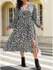 Элегантное платье большого размера с леопардовым принтом и V-образным вырезом для весны и осени — купить товар онлайн с бесплатной доставкой по всему миру!