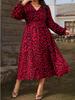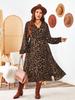 Элегантное платье большого размера с леопардовым принтом и V-образным вырезом для весны и осени