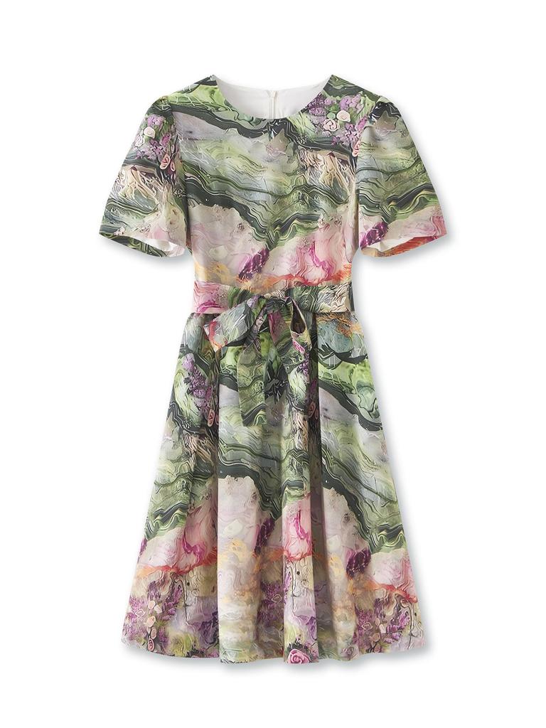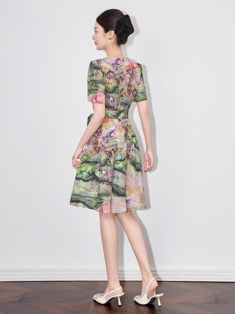 Высококачественная омолаживающая юбка-солнце большого объема, принт в отпускном стиле, летнее платье с акцентом на талии для женщин