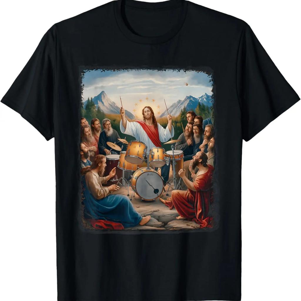 Иисус Играет на Барабанах Смешная Христианская Футболка для Барабанщика