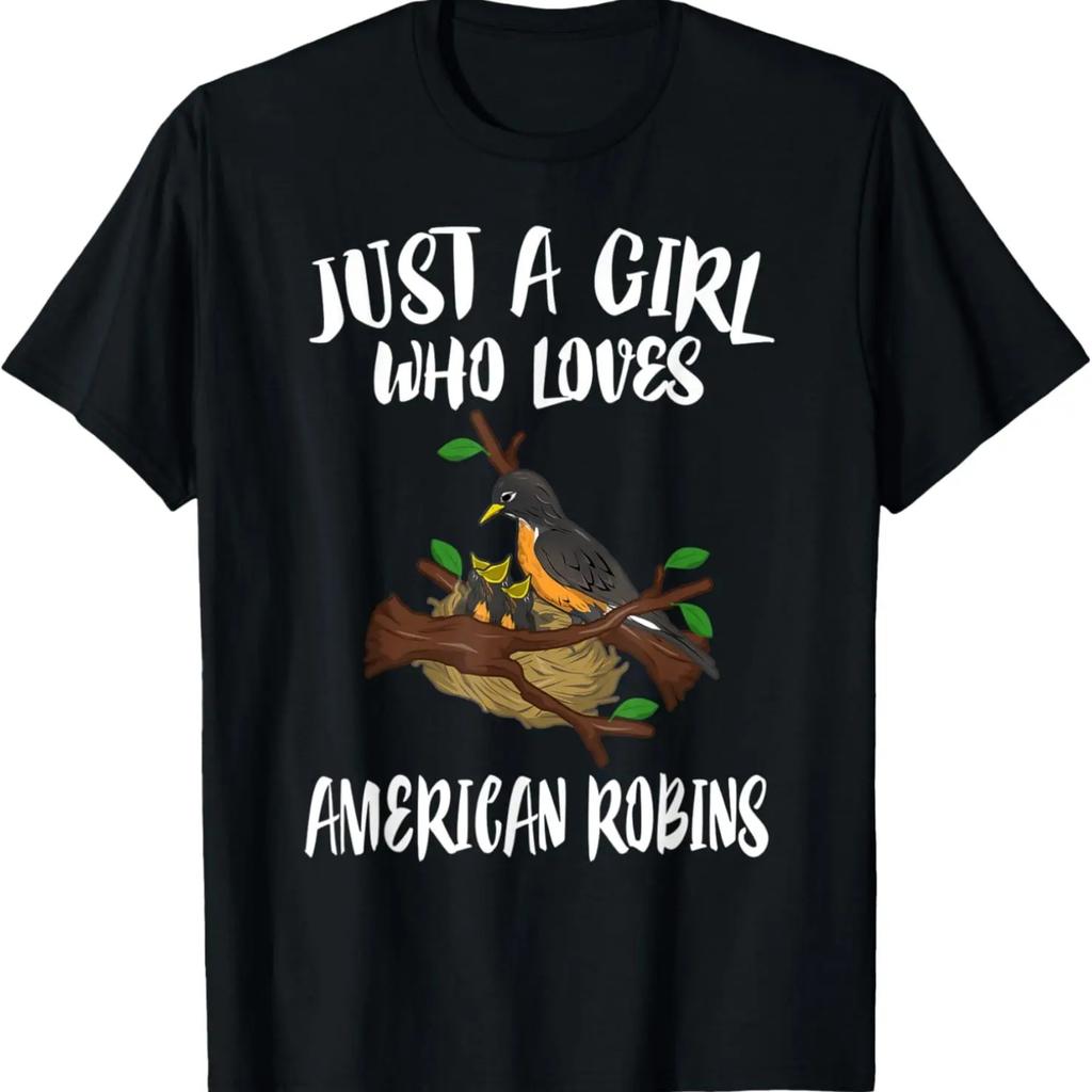 Just A Girl Who Loves American Robins Birds Gift T-Shirt — купить товар онлайн с бесплатной доставкой по всему миру!