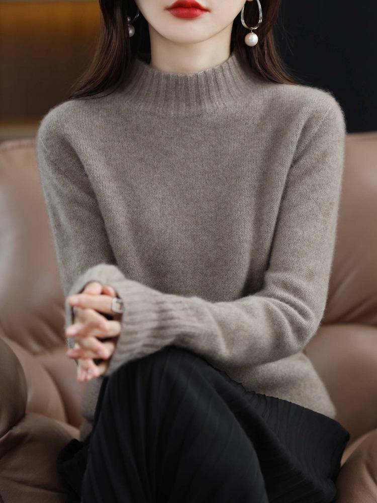 Женский шерстяной свитер: Осень/Зима, Полувысокий воротник, Теплый, Однотонный, Свободный крой, Повседневный стиль — купить товар онлайн с бесплатной доставкой по всему миру!