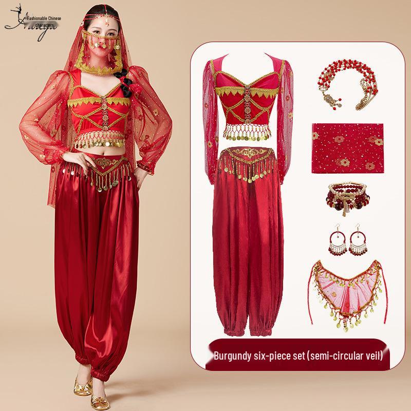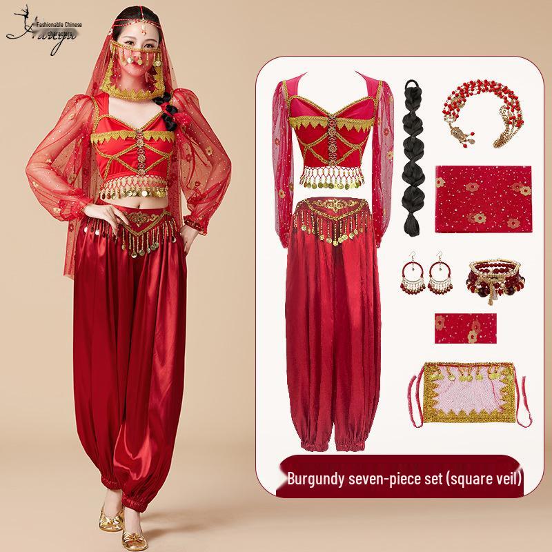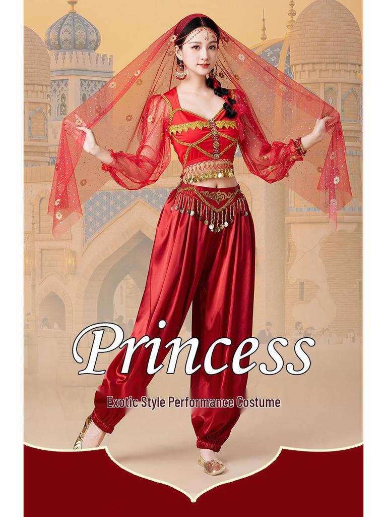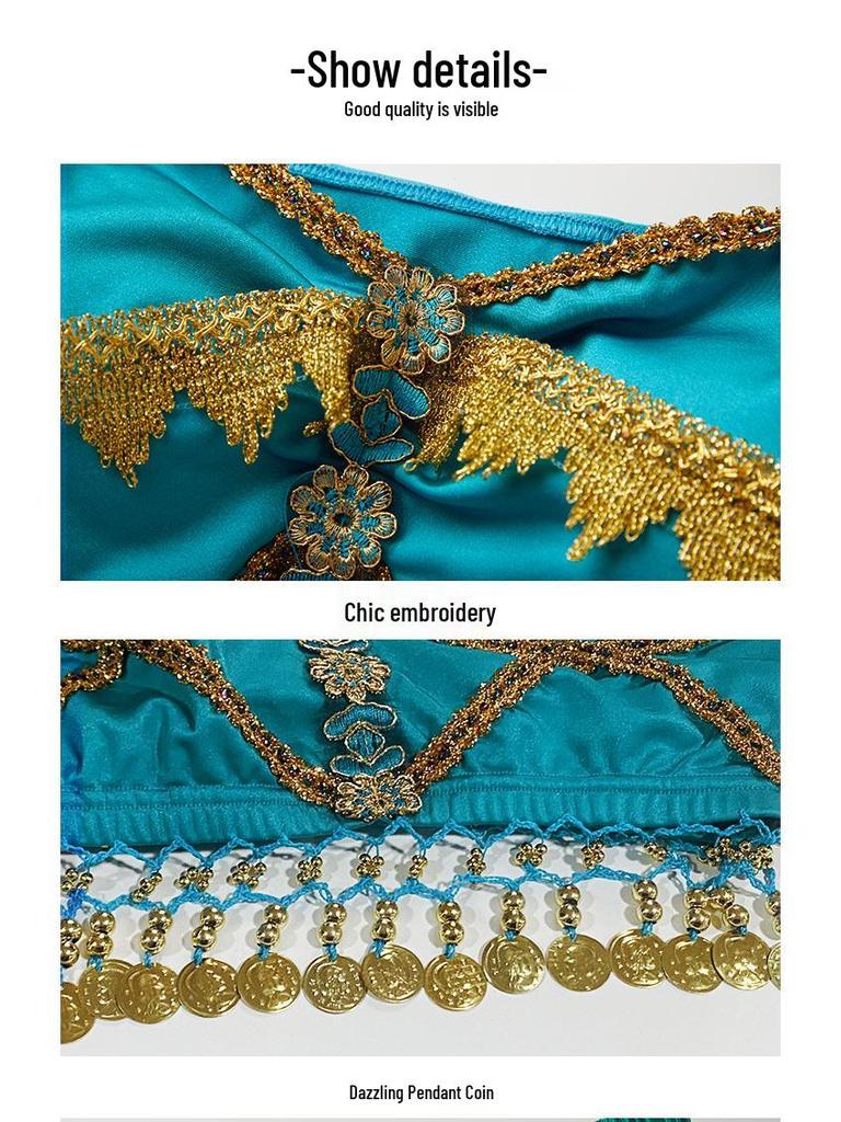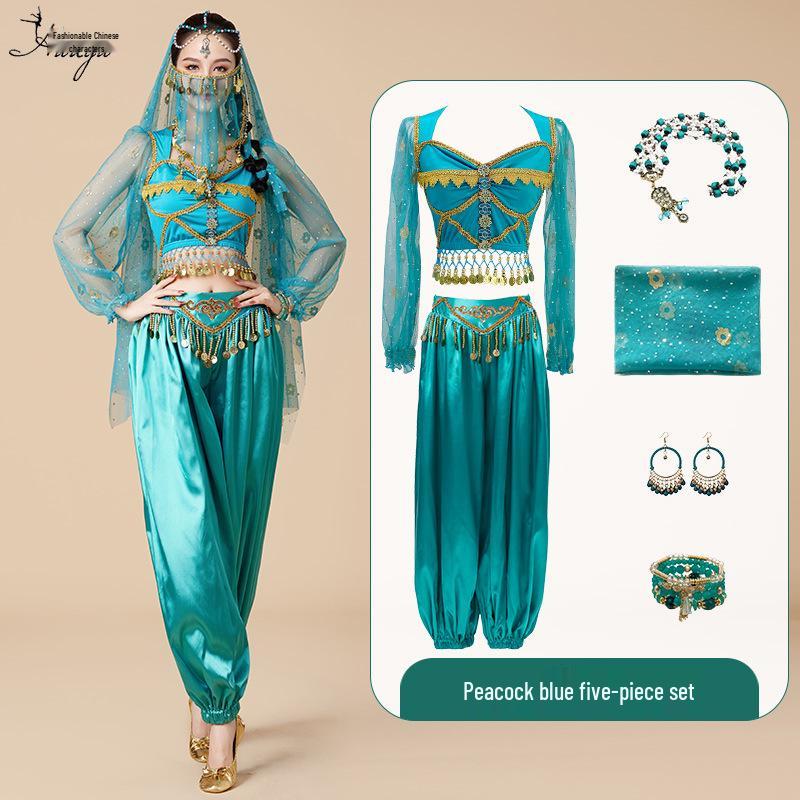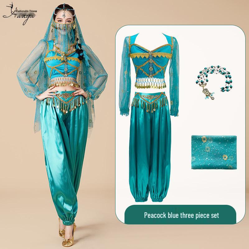 Костюм для косплея принцессы Жасмин на Хэллоуин: Комплект для танца живота и сценических выступлений