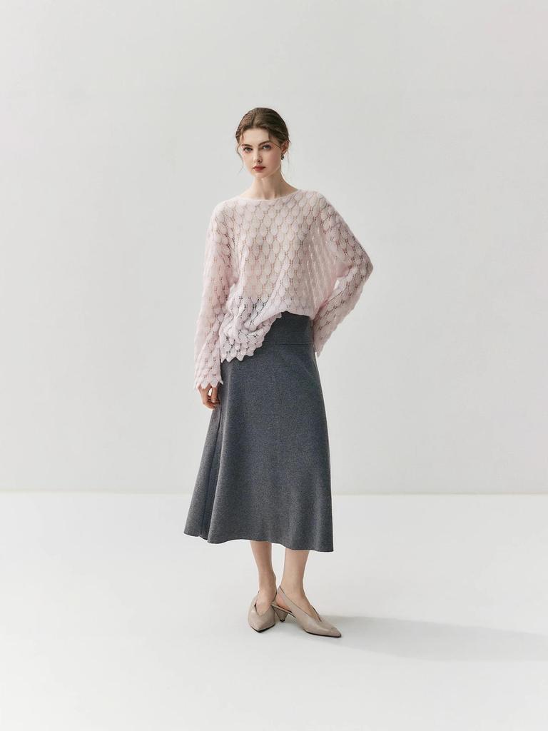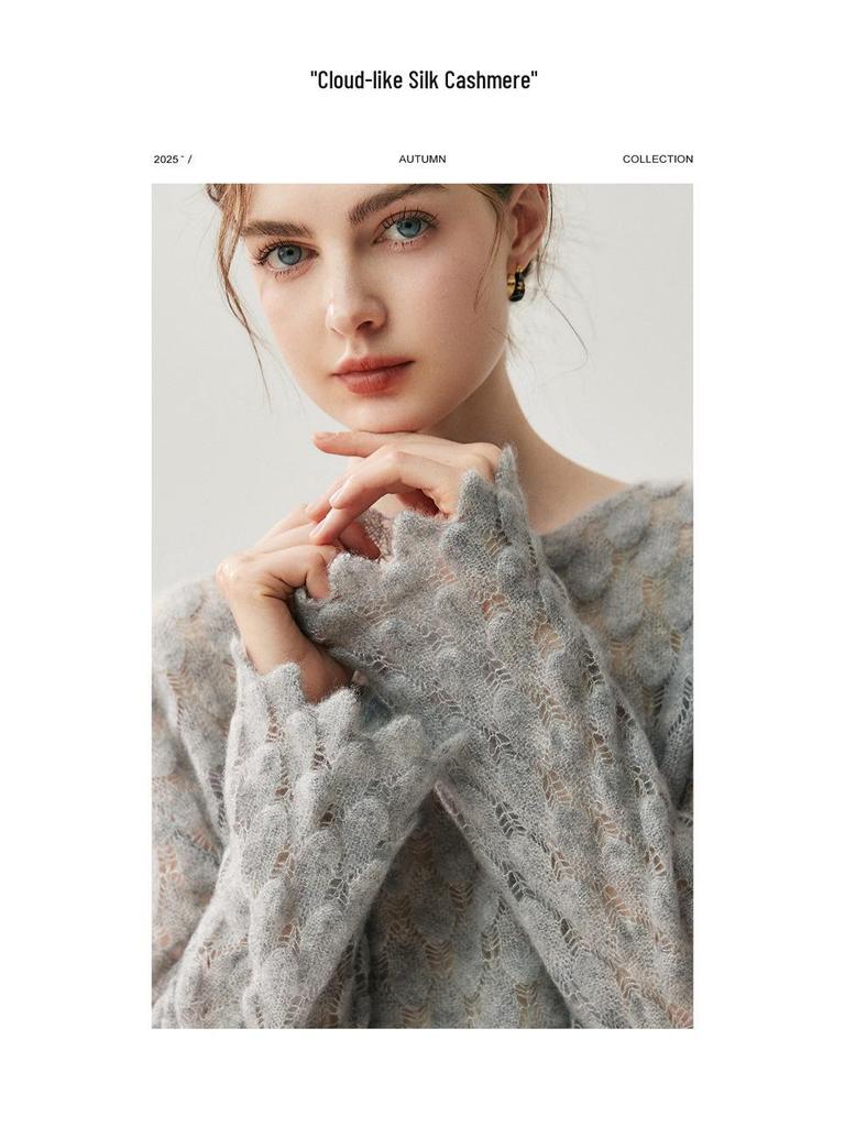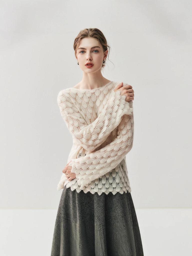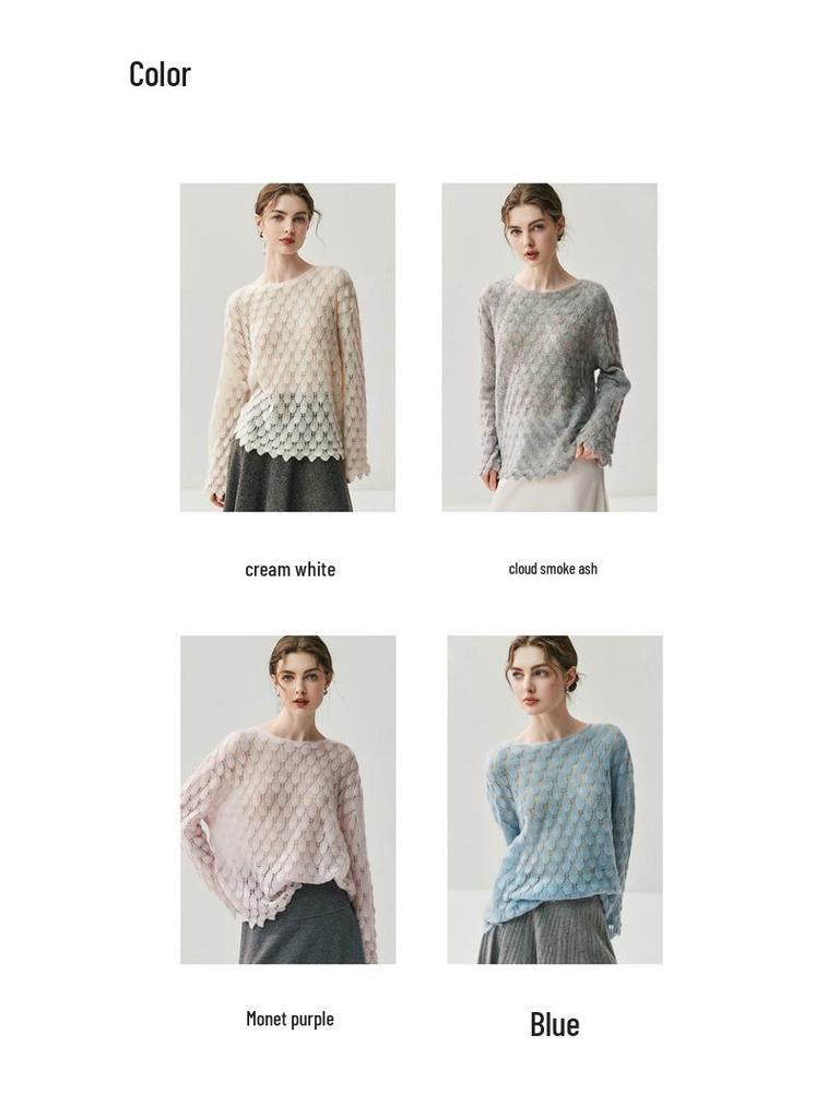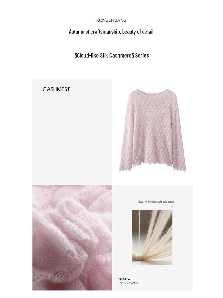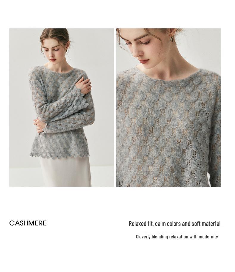 Женский кашемировый трикотажный топ с ажурным узором из перьев - Легкий свитер для весны и осени