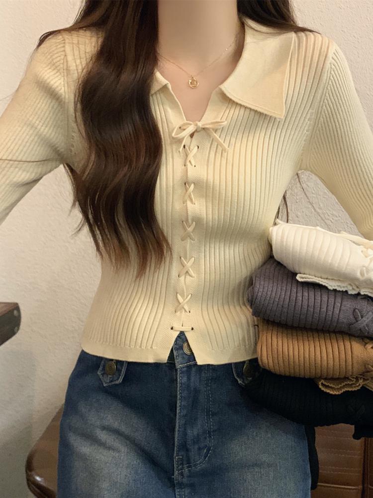 Женский вязаный свитер с длинным рукавом, облегающего кроя, с воротником поло - Коллекция начала осени — купить товар онлайн с бесплатной доставкой по всему миру!