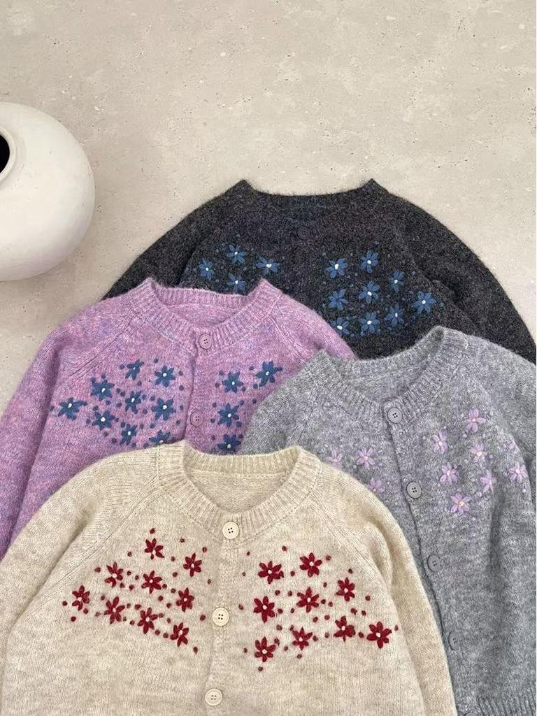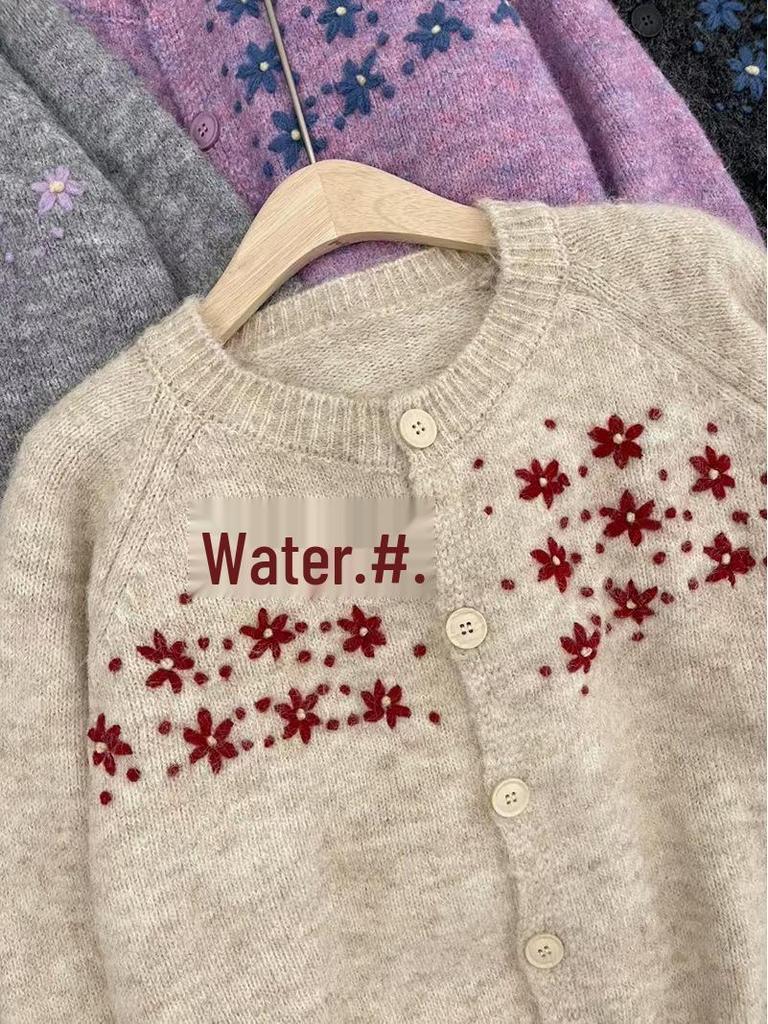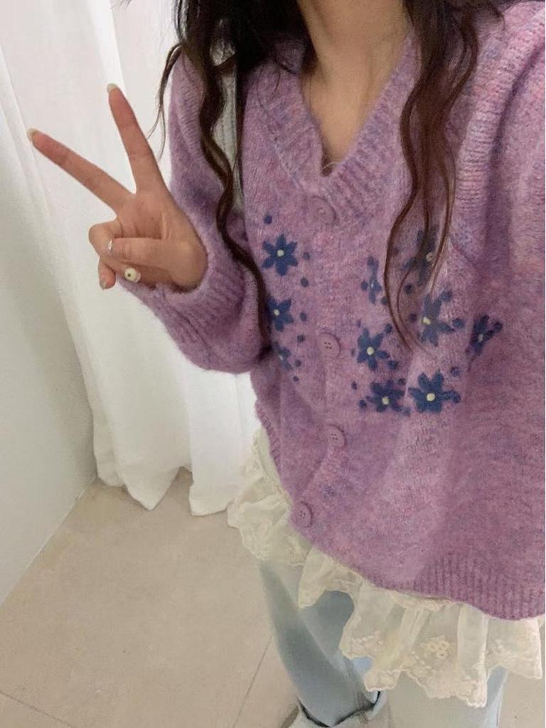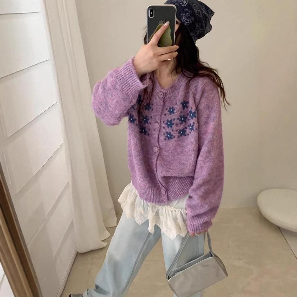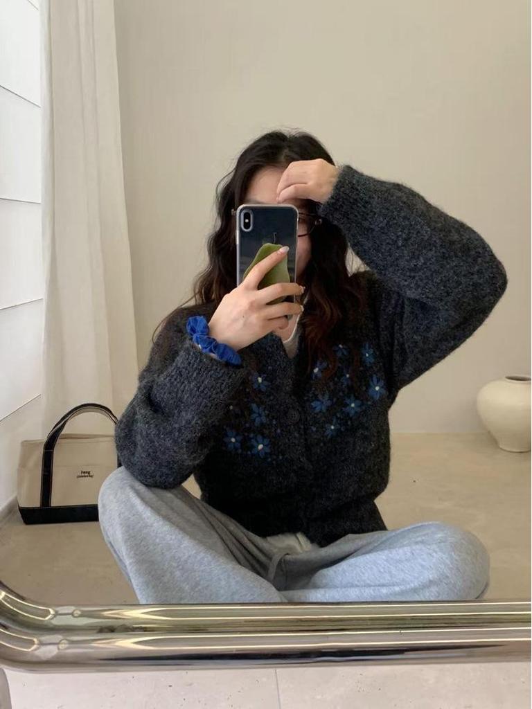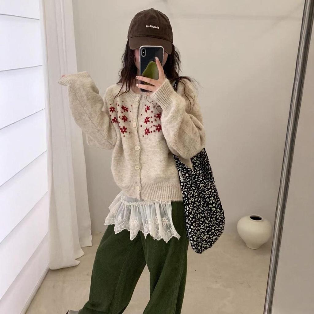 Женский вязаный кардиган свободного кроя в корейском стиле на осень 2025 года с вышитым дизайном