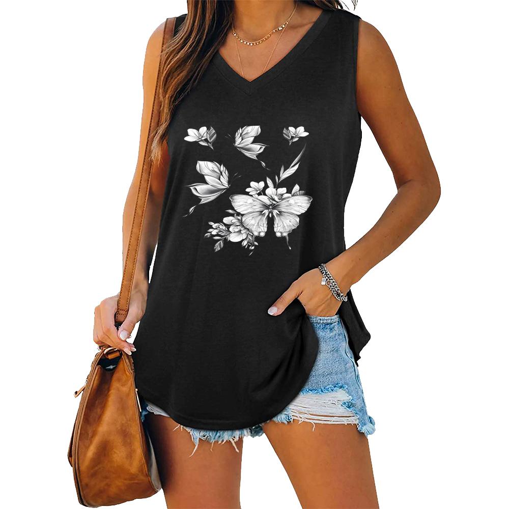 Летняя мода майка женская с V-образным вырезом женская повседневная футболка без рукавов