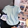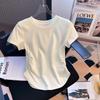 Женская летняя футболка 2024 года с присборенной талией, нерегулярным коротким рукавом и круглым вырезом