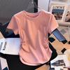 Women's Summer 2024 Ruched Waist Irregular Short Sleeve Round Neck T-Shirt — купить товар онлайн с бесплатной доставкой по всему миру!