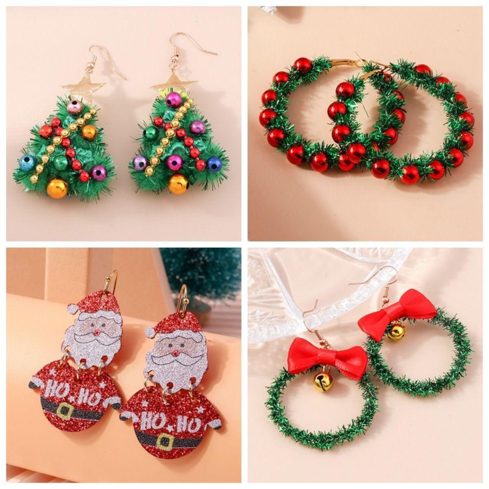 Счастливого Рождества Нового года Серьги Рождественская елка Венок Круглые серьги Женщины Девушки