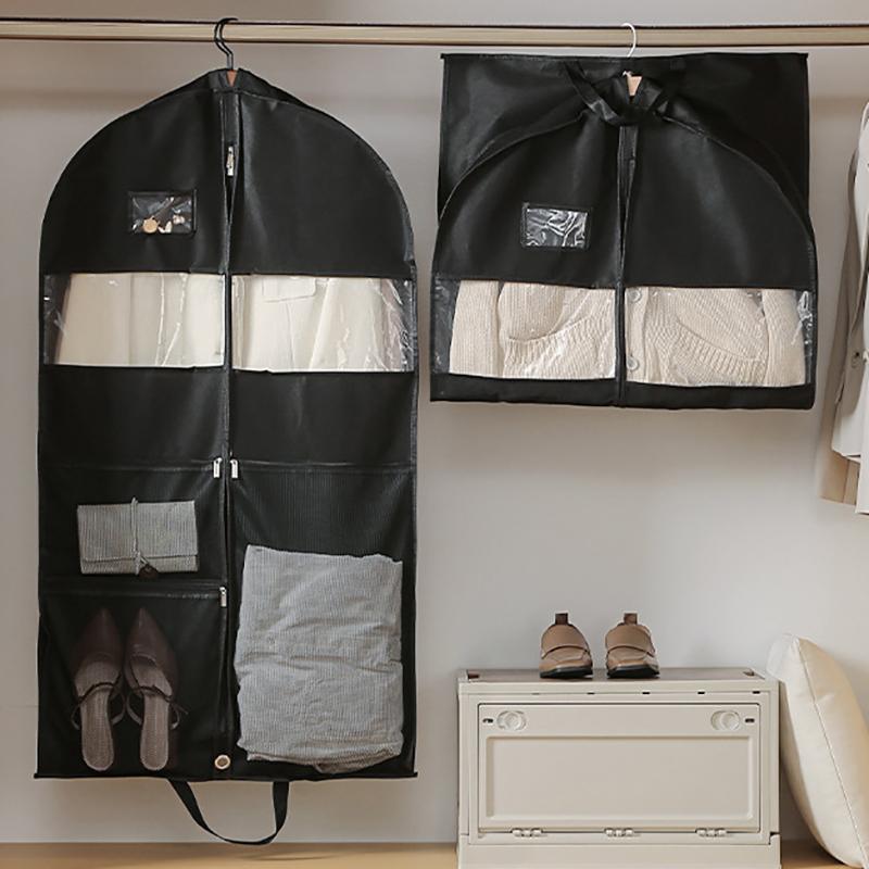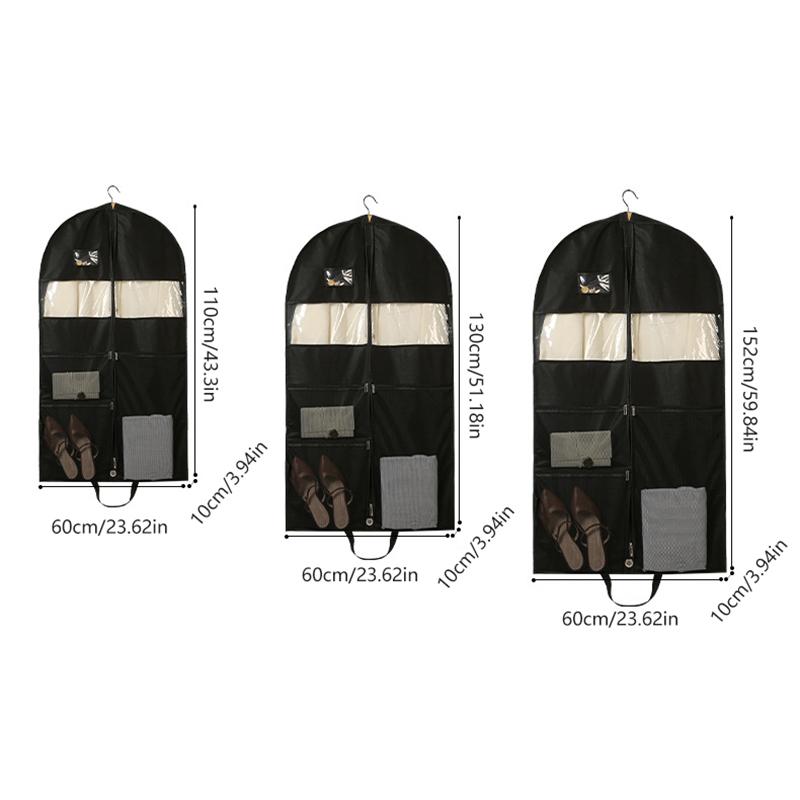 1. Несколько карманов на молнии: Чехлы для костюмов с 3 воздухопроницаемыми карманами на молнии для хранения обуви, носков, сменной одежды или аксессуаров. Прозрачные карманы позволяют хранить все аксессуары на виду и в порядке, так что вы ничего не забудете.