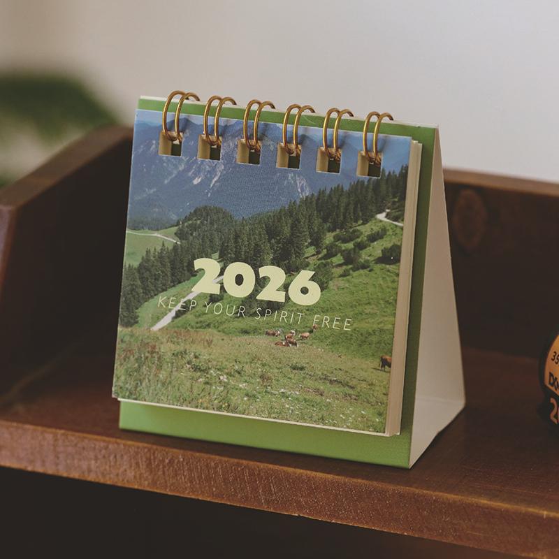 Мини настольный календарь-планер 'Пейзаж' на 2026 год, креативный календарь на спирали, настольное украшение, офисные канцелярские товары