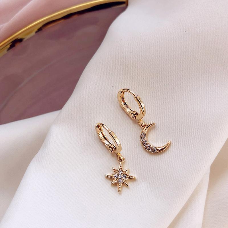 1 пара асимметричных сережек-колец в форме звезды и луны для женщин и девочек, золотого и серебряного цвета, ювелирные изделия для вечеринок, подарки