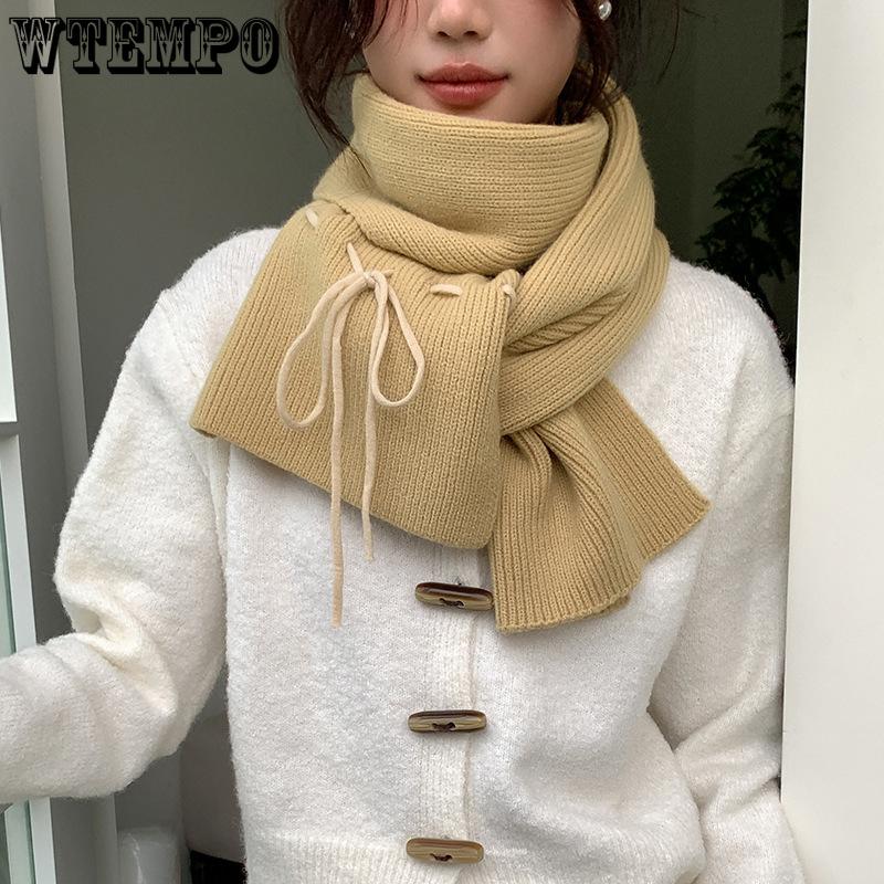 Bow Tie Tied Knitted Scarf for Women Autumn and Winter Warm and Sweet Knitted Scarf