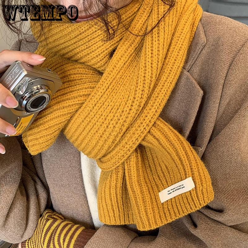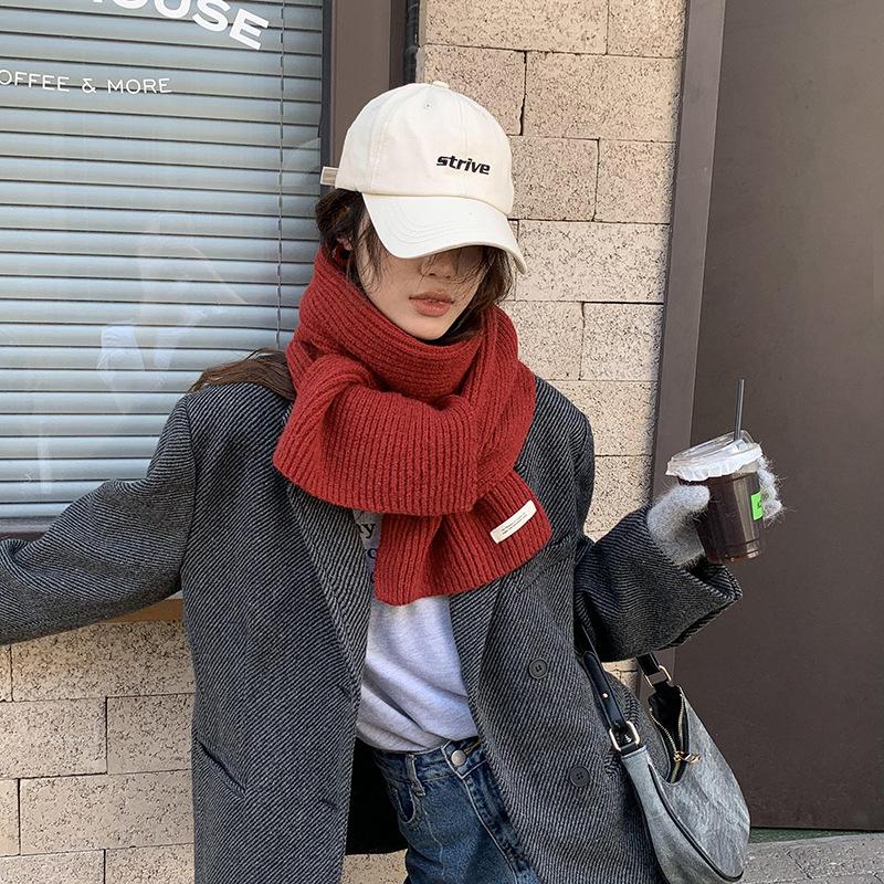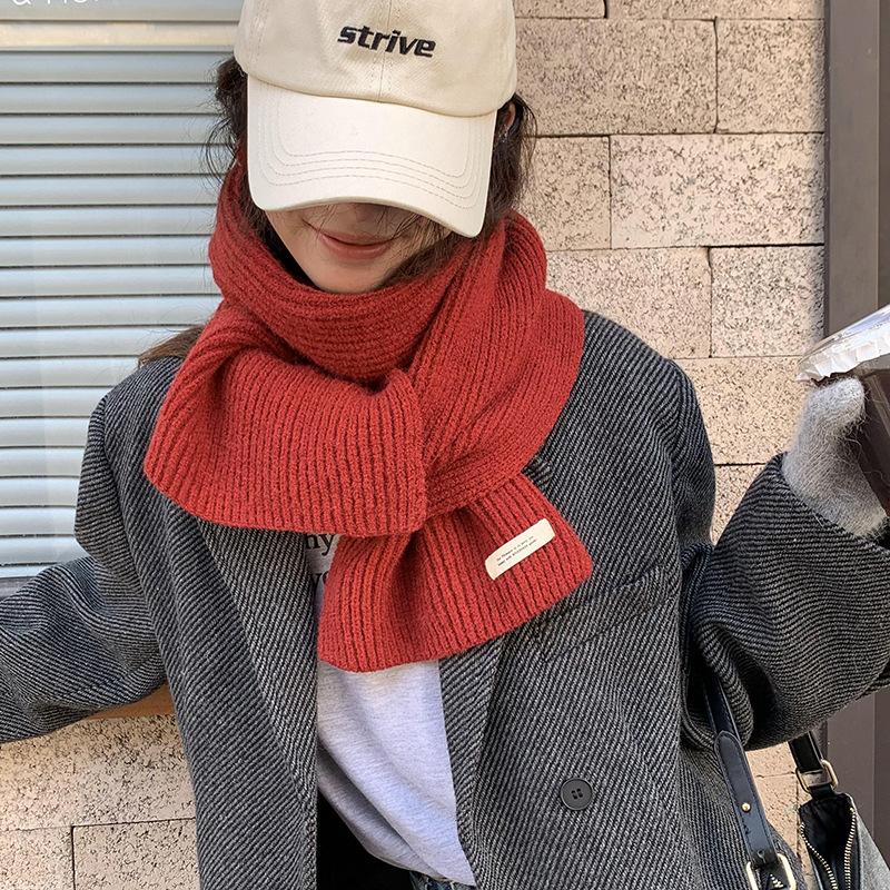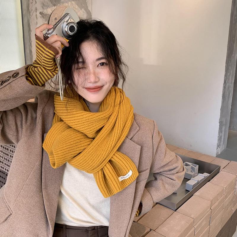 Сладкий вязаный шарф для женщин однотонный в стиле колледжа теплый шарф