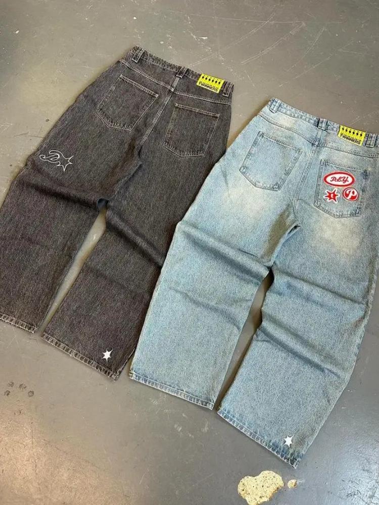 Y2K Harajuku Hip Hop Graphic Oversize Retro Blue Baggy Jeans Mens Womens New High Talyase Wide Leg Брюки