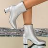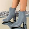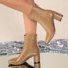 Женские повседневные ботильоны из искусственной кожи, нескользящие, с острым носком, на массивном блочном каблуке, короткие ботинки для женщин, удобные ботильоны на низком каблуке для платья с молнией