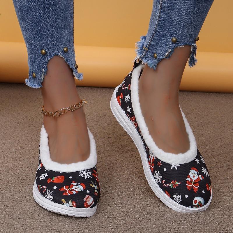 Трансграничная внешняя торговля новые низкие бархатные туфли-лодочки с мелким вырезом женские европейские и американские элементы Рождества на плоской подошве хлопковые туфли