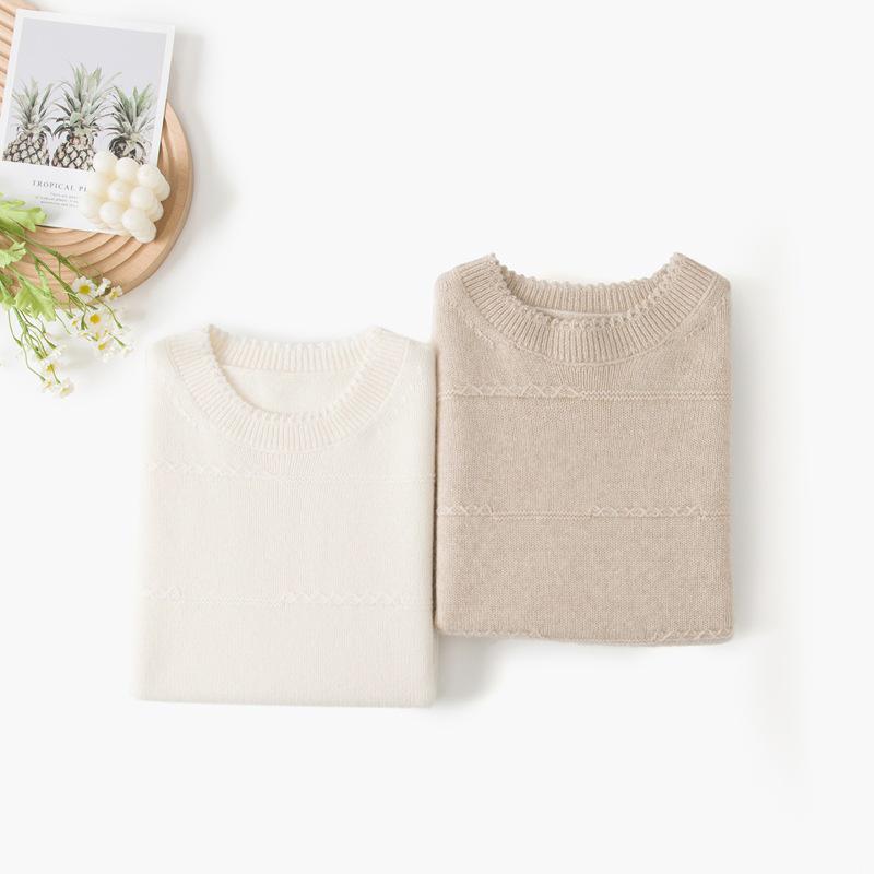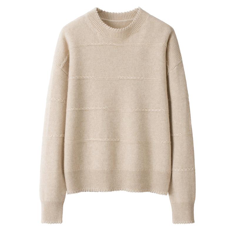 Минималистичный пуловер из 2-слойного кашемира ручной вязки с круглым вырезом и кисточками